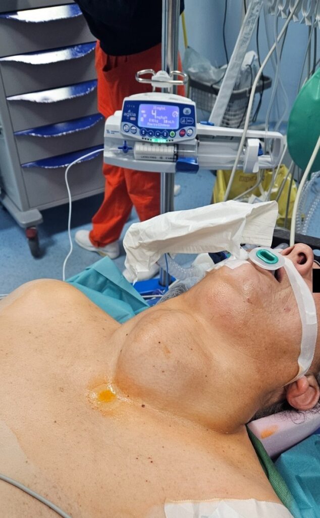 Al presidio ospedaliero Sant’Antonio Abate di Trapani è stato eseguito un delicato intervento sulla paziente 49enne A.R. a cui è stata asportata la ghiandola tiroide, eccezionalmente ingrossata, cosa che costituiva per la paziente un pericolo altrettanto eccezionale. L’intervento è stato eseguito dall’equipe di Francesco Marino, direttore dell’Unità operativa dipartimentale di Chirurgia dell’ospedale di Salemi, con l’aiuto, Francesca Gatto, gli anestesisti Paola Chirco e Giovanni Ippati, l’infermiera strumentista Viviana Arpaia, e l’infermiere tecnico di anestesia Pierpaolo Mogliacci. Normalmente la ghiandola tiroidea, posta nel collo, nell’adulto misura pochi centimetri e pesa circa 20-30 grammi. La tiroide asportata nella suddetta paziente pesava ben 600 grammi. Raramente capita di osservare un tale ingrossamento, ed è facile immaginare come una tale massa stesse rendendo quasi impossibili le normali funzioni degli altri organi del collo: questa tiroide ormai notevolmente ingrossata, deformava e schiacciava la trachea rendendo difficile la respirazione, comprimeva l’esofago determinando fenomeni disfagici e dislocava inoltre la carotide e la giugulare interna.