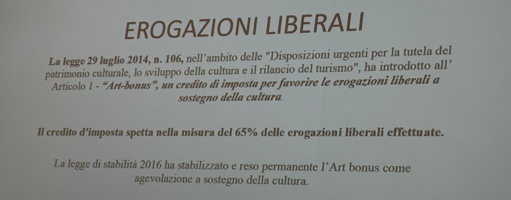 Ebbene, sempre con la stessa caparbietà menzionata prima, siamo qui a ricordarle ancora una volta che quel progetto, tanto semplice quanto immediato, e sondati anche alcuni imprenditori locali, esiste ancora: ovvero quello di installare due totem, all’entrata e all’uscita dell’antico Viale, in materiali in linea col nostro territorio (pietra, ferro, terracotta e ceramica con colori naturali) sui quali accogliere una dozzina almeno, se non più, di sponsorizzazioni annuali da 2.000 o 3.000 euro per azienda, utilizzando proprio gli strumenti di legge che sono stati oggetto del suo ultimo incontro del 10 luglio con gli operatori privati locali (allego foto di una slide mostrata dalla stessa direttrice).