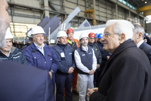 PALERMO (ITALPRESS) – “Complimenti per i risultati straordinari ed eccellenti dovuti alla vostra opera”. Così il presidente della Repubblica Sergio Mattarella parlando con alcuni operai della Fincantieri di Palermo durante la sua visita ai cantieri navali. Mattarella si è fermato con le maestranze anche per qualche foto. “Fincantieri reca grande beneficio e prestigio all’Italia”, ha aggiunto il capo dello Stato.