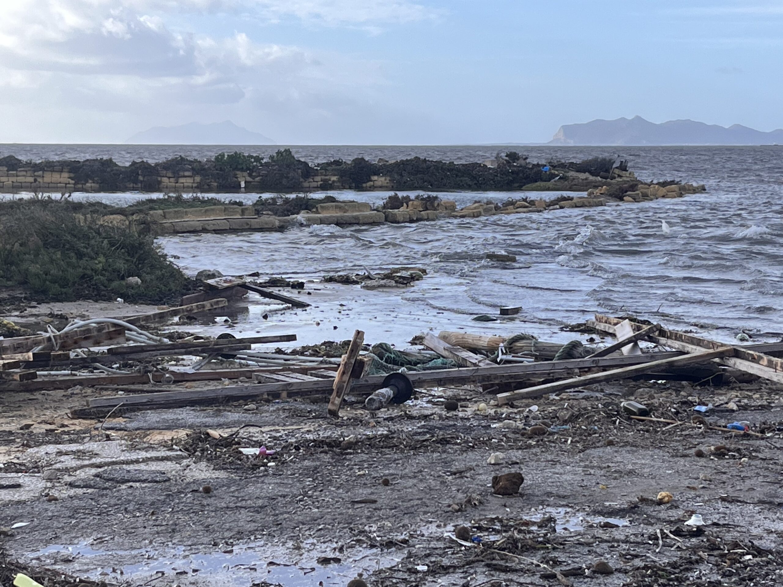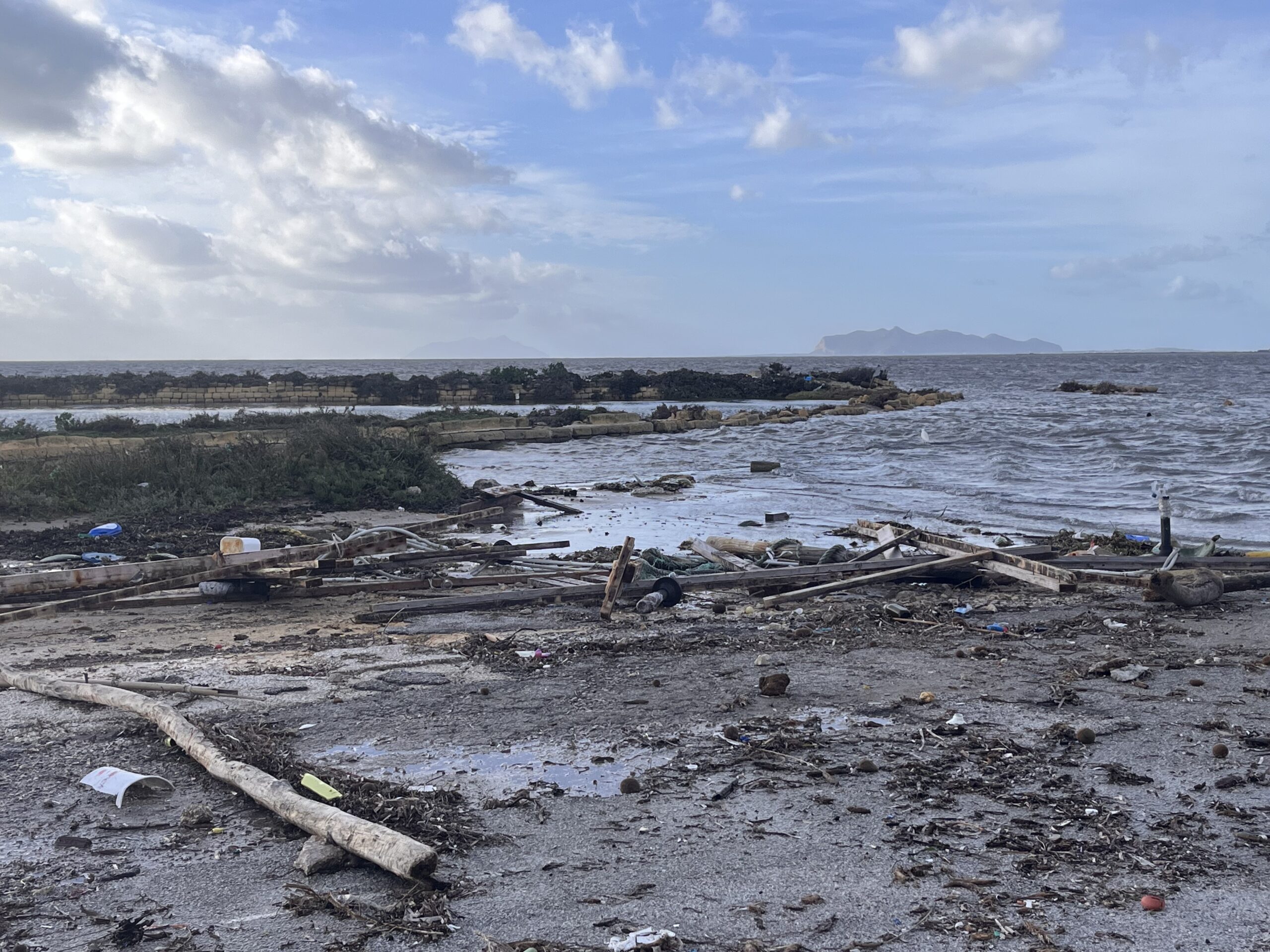 Bufera a Marsala, il litorale dello Stagnone è un disastro. Le immagini