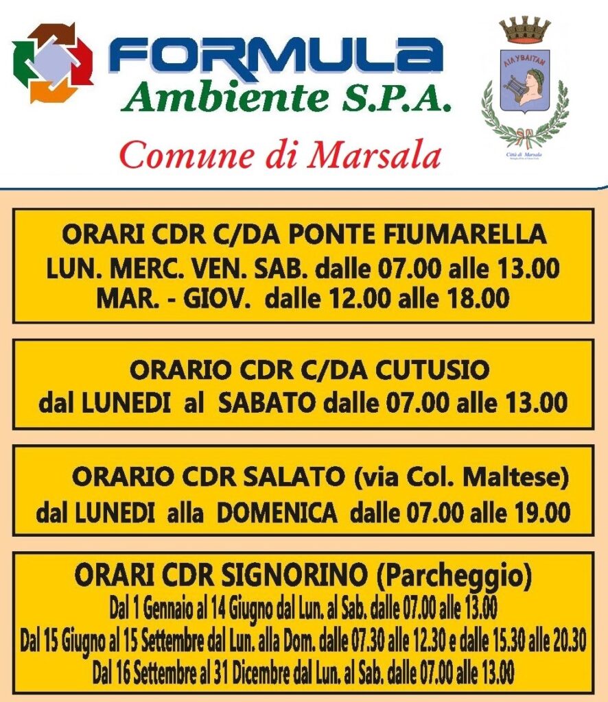 Questi gli orari e i giorni di conferimento