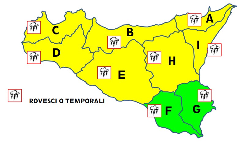 Allerta gialla in quasi tutta la Sicilia: tornano piogge e vento