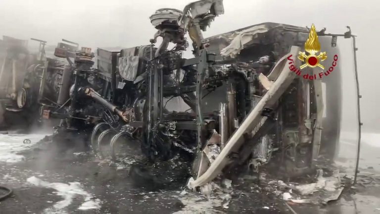 Un’autocisterna si incendia sulla A1, ferito il conducente