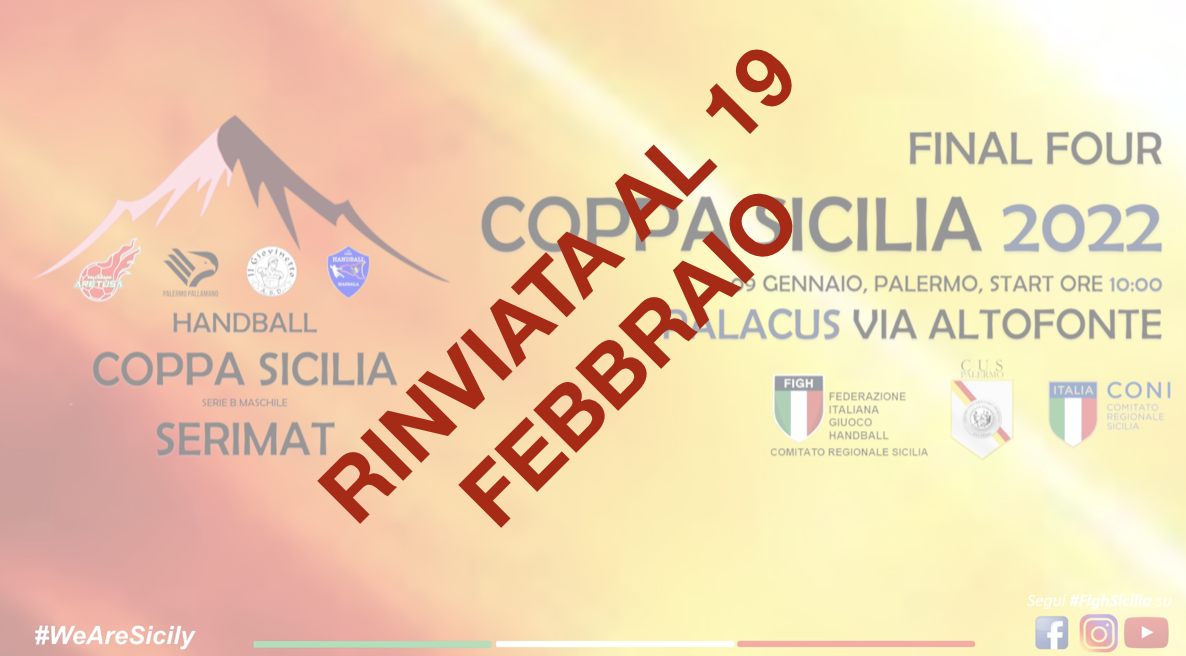 Rinviata al prossimo 19 febbraio, causa l’emergenza sanitaria, la quinta edizione della Coppa Sicilia Serimat 2022 riservata alle società di serie B di Pallamano Maschile che avrebbe dovuto svolgersi lo scorso 9 gennaio. L’evento si svolgerà Palacus di Palermo, organizzata dalla locale società della Palermo Pallamano, in collaborazione con il Comitato Sicilia Figh, presieduto da […]