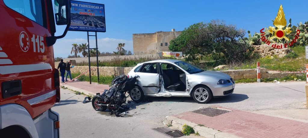 Brutto incidente sul Lungomare di Trapani, si scontrano moto e auto