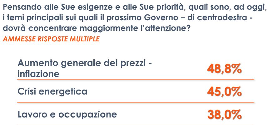 Per gli italiani inflazione e caro energia le priorità del nuovo Governo