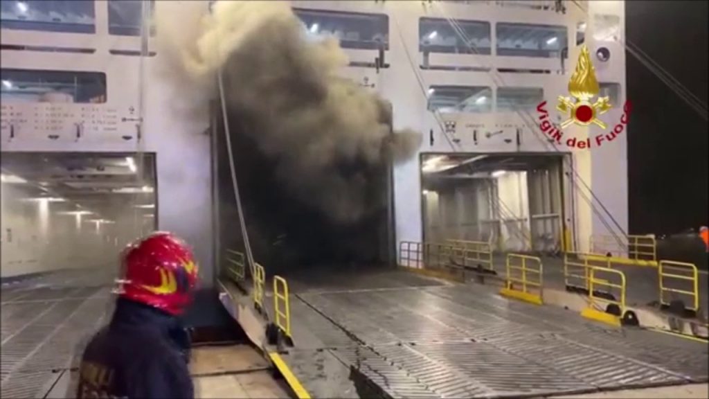 Incendio sul traghetto Palermo-Napoli, le immagini dei soccorsi