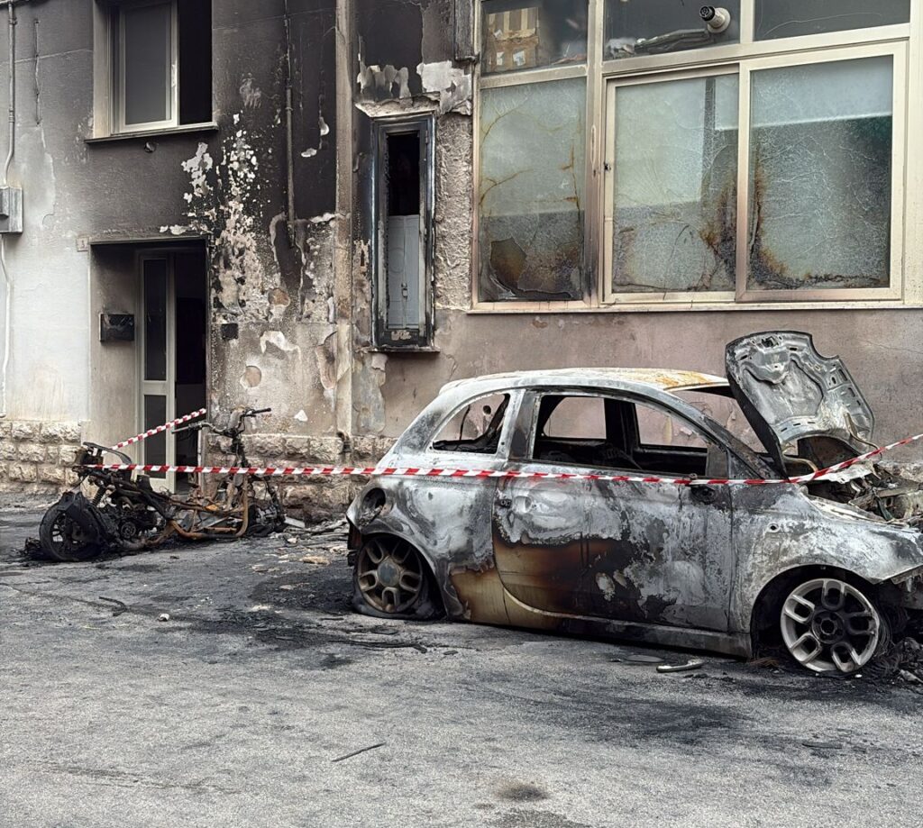 Marsala: auto a fuoco, fiamme invadono la facciata di una palazzina