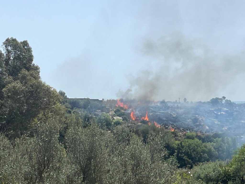 Vasto incendio vicino la Fiumara del Sossio, si teme per una villa e una pineta