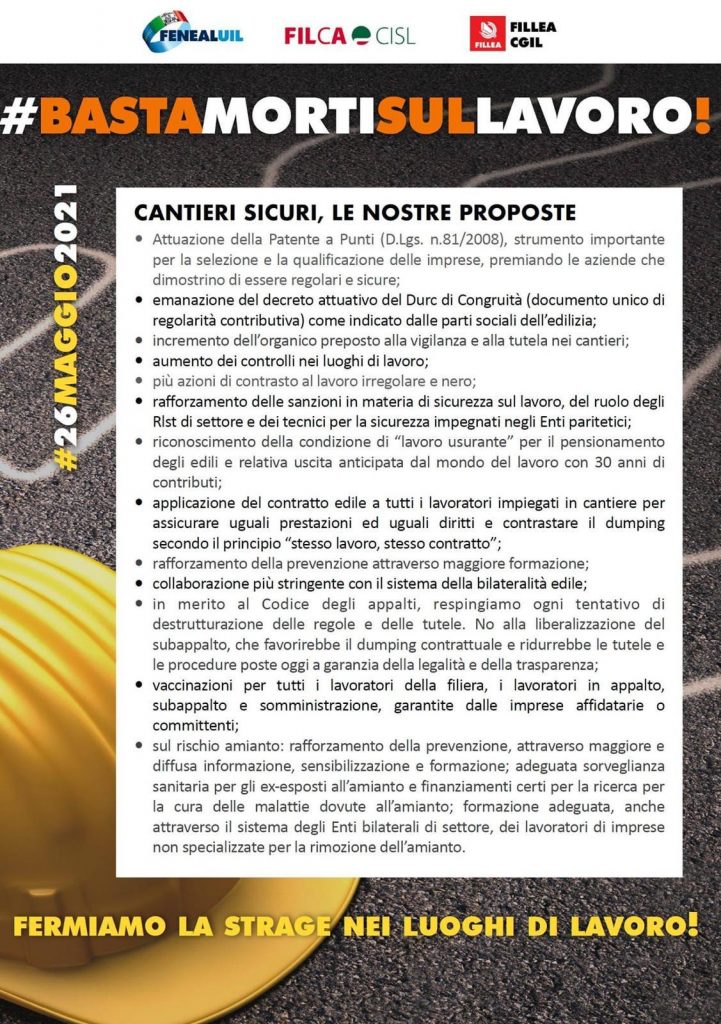 Basta morti sul lavoro: i sindacati degli edili in piazza con un flash mob
