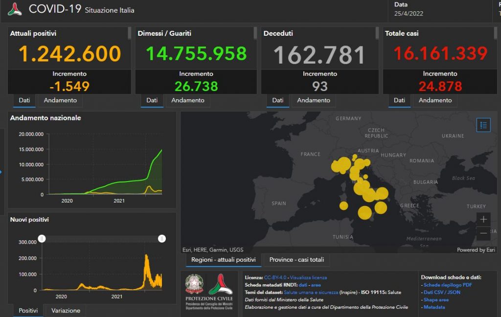 Covid 24 aprile, 56.263 nuovi casi e 79 decessi in 24 ore