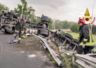 Si ribalta autocisterna, ferito l’autista. Le immagini dei soccorsi