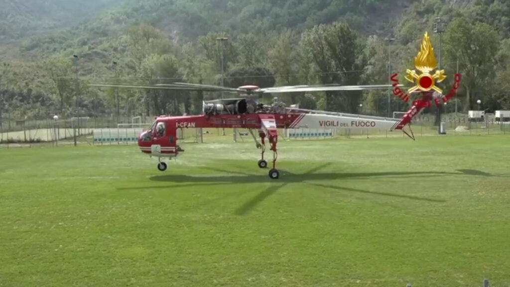 Maltempo, elicottero vigili del fuoco trasporta generatori elettrici