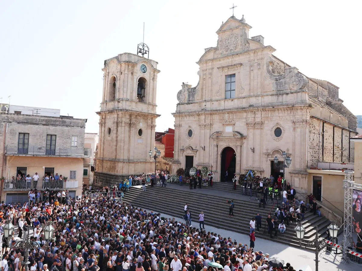 L’ultimo saluto a Pippo Baudo, commozione e un fiume di gente ai funerali a Militello / Video